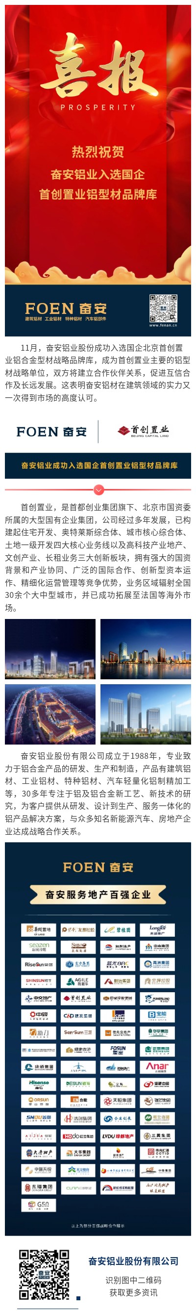 【喜報】奮安鋁業(yè)入選國企首創(chuàng)置業(yè)鋁型材品牌庫