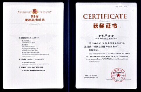 (總經(jīng)理黃秀華女士榮獲“亞洲品牌優(yōu)秀女企業(yè)家”榮譽(yù)稱號)