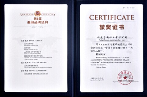 (奮安集團(tuán)榮獲“中國(鋁型材行業(yè))十大領(lǐng)軍品牌”榮譽(yù)稱號)