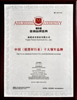 【奮安榮獲榮譽(yù)之后的責(zé)任與擔(dān)當(dāng)】:感謝奮安友人長期支持與關(guān)愛,奮安在9月9日,榮獲第九屆亞洲品牌所評選的“中國鋁行業(yè)十大領(lǐng)軍品牌”,總經(jīng)理黃秀華女士榮獲“亞洲品牌優(yōu)秀女企業(yè)家”。值此佳際,與您分享奮安人的喜悅,奮安人更加竭盡全力以 “優(yōu)質(zhì)的產(chǎn)品+優(yōu)質(zhì)的服務(wù)+愛心”的理念,來生產(chǎn)好產(chǎn)品、服務(wù)好客戶(一切只為客戶狂),以積極嚴(yán)謹(jǐn)?shù)膽B(tài)度去承擔(dān)品牌發(fā)展的責(zé)任和挑戰(zhàn),向行業(yè)巔峰攀登,造就中國鋁型材行業(yè)的領(lǐng)導(dǎo)品牌。