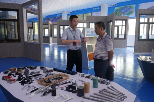 (總監在全國最大的門窗體驗中心向貴賓介紹奮安特色鋁單板)