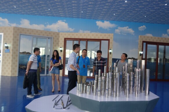 (總監(jiān)在全國(guó)最大的門窗體驗(yàn)中心向貴賓作介紹)