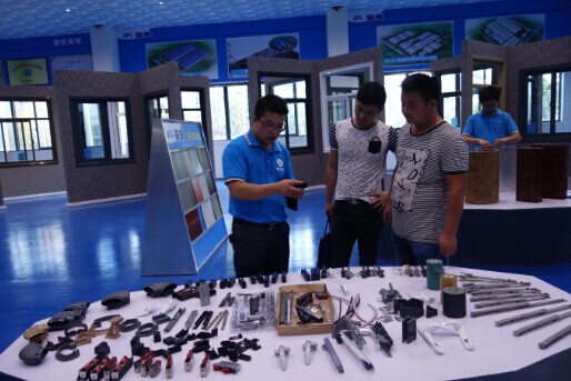 (曾副總在全國(guó)最大的門窗體驗(yàn)中心向貴賓介紹我司優(yōu)質(zhì)配套配件)