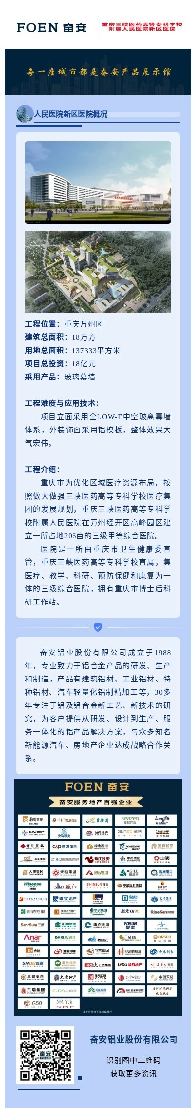 【工程項目案例】重慶三峽醫藥高等專科學校附屬人民醫院新區醫院采用奮安鋁材