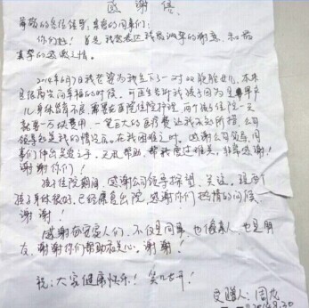 (噴涂車間員工周龍的感謝信)