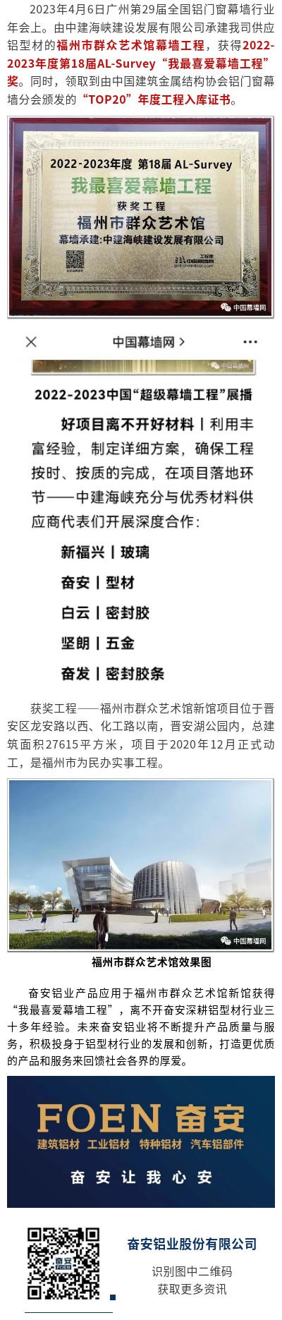 喜報|奮安鋁材產品應用于“福州市群眾藝術館”加冕2023工程獎