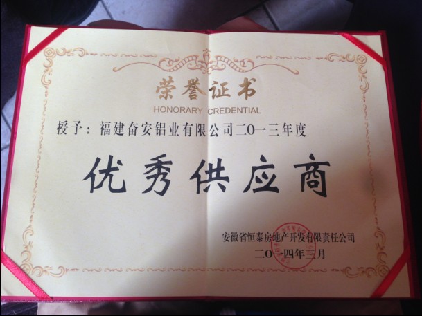 3月14日,奮安集團總經理黃秀華女士受邀出席安徽省恒泰集團2014年度供應商洽談大會,在此次大會上,奮安榮獲恒泰集團“優秀供應商”榮譽稱號。