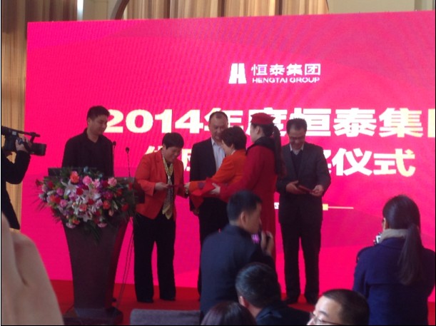 (集團總經理黃秀華女士接受恒泰集團劉紅總裁頒發的“優秀供應商”榮譽證書)