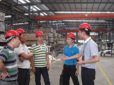 隨后貴賓談到型材庫存問題,黃副總表示,我司完全按照客戶訂單生產,成品庫里所有的型材都已“名花有主”,奮安公司不作任何庫存。