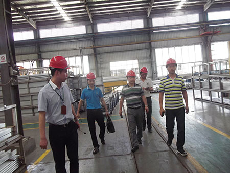 此次參觀,貴賓考察我司福清科技工業城鋁型材生產的各個工序時,重點考察時效、噴砂、電泳和噴涂等工藝,贊賞我司生產工藝之卓越。此外,還特別參觀注膠和穿條隔熱工藝、我司新研發的“圣羅德”系統鋁門窗展示廳。