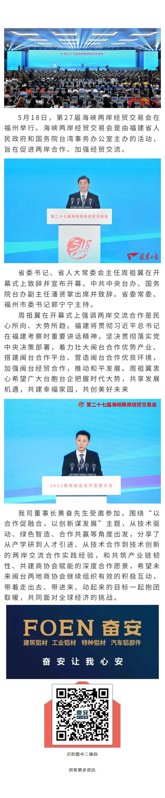 第二十七屆海峽兩岸經貿交易會盛大舉行,我司董事長黃奮先生受邀參加